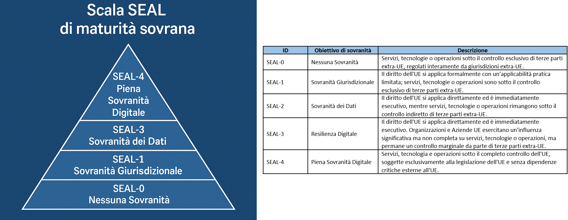 • Sovereignty Effectiveness Assurance Levels (SEAL): modello di misurazione del livello di sovranità